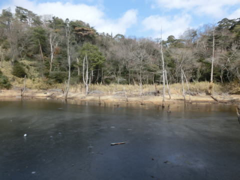 気温が少し上昇気味の今日、”雌池”=ほぼ全面氷結でした…(2月4日)