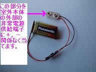 電池が少なくなると まず 音と光で知らせてくれます。(日本語音声案内付き機種の場合、乾電池を交換してくださいと音声案内が出ます。)さらに少なくなると指紋が使えなくなります。その時は暗証番号でお入りください。さらに長期留守のときに完全になくなりましたらコンビにでも売っています左の写真の四角い)9Vの乾電池を室外本体の非常電源供給端子に直にプラスマイナス関係なく当てることにより指紋又は暗証番号では入れます。
