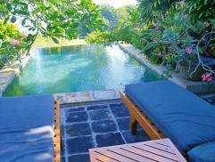 | 家の外の庭。ジンバラン湾が見える | ガゼボ(東屋・お昼寝用にバスタオルも常備) | プライベートプール(掛け流しで清潔) |