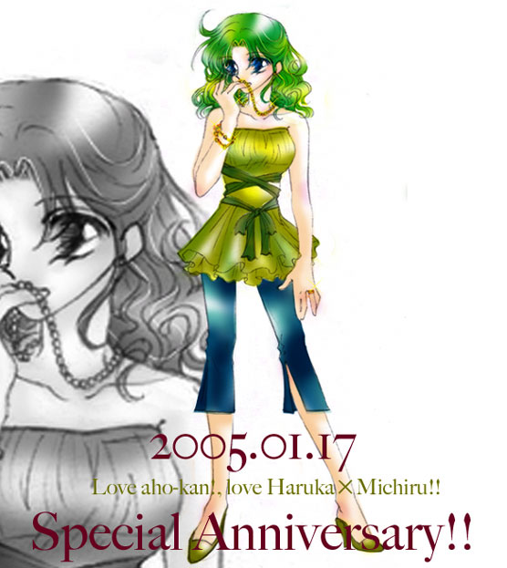 2005謹賀新年シリーズ、紫龍→和葉ちゃんと続き、ラストバッターは我らがみちるさんですv セラミュ活動休止と阪神淡路大震災をうけてのアニバーサリーとなりました。 今回のイラストの共通テーマは「ジーンズ」 三者三様の着こなし、いかがでしたでしょうか? アホ感!は2005年も、みちるさん激LOVE・はるみちでいっきまーすv そこんとこ、よろぴこ。 (20050117)■next→