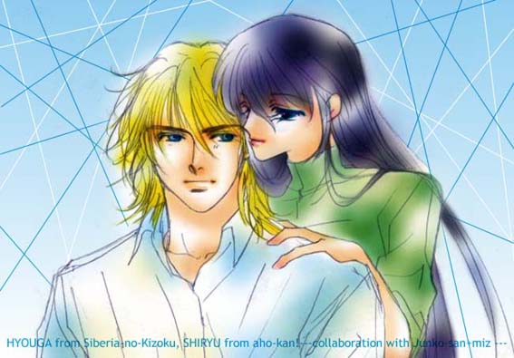 って主旨で、先に純子さんに氷河を描いていただき、おんぶオバケのアホ紫龍を描き添えて...v