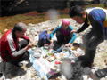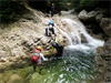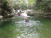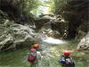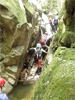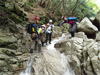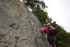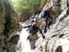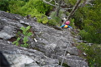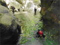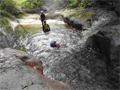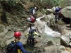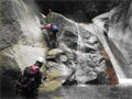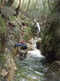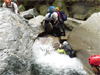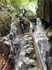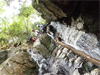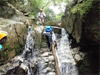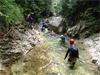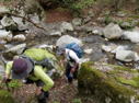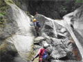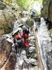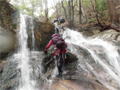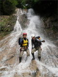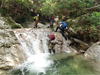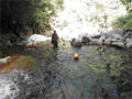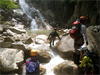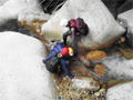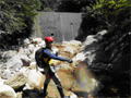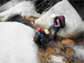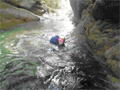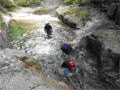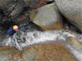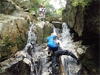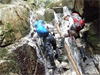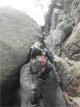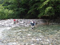 | 鈴鹿 石谷川(本谷) 遡行 山行日 2012年8月26日(日) 参加者 L北岡 SL伊東 大沢 三木 京都駅に7時集合。本日は沢の師匠 大沢さんとの久しぶりの沢行き。 北岡号に4人満席 名神京都東IC〜東名阪亀山ICを出て 石谷川林道を走り、 通行止めの手前の駐車地に車を止め 身支度を整え、8時50分出発です。 駐車場横の階段を降りると大堰堤の上に出ました。 砂地の浅瀬を少し歩くとだんだん水量も増え 10分程で きれいな淵に出合います。 早速ウォーミングアップとばかり 泳ぎます。男性3人は泳ぎ名人です。 伊東はへなちょこ泳ぎですが、指導を仰ぎ なんとか泳ぎ切りました。 ![]() ![]() しばらく進むと廊下の奥に深い釜を擁した2段12m頂礼井戸の滝。またまた泳いで取付きます。 見るからに つるつるで大沢さんが巻いてロープを出してくれました。なぜか一番手 伊東です。 足を置いてもつるつる 敢えなく釜にドボンです。 それを見た二人は「無理無理巻こ巻こ」っていうことで、さっさと 右の岩の斜面を巻きました。 ![]() 小滝と釜、穏やかな渓相が続き 次に美しい釜を持った7m滝が現れます。 エメラルドグリーンの釜が美しいです。 この滝もつるつるで登れそうもありません。 ここは左斜面のトラロープを伝って越えました。 ![]() 小滝を抜け 7つ釜が始まります。きれいです!!泳いで 5mのチョークストーンに取り付きますが・・・。 三木さん、CSを抱え込んであともう一息というところまで行くのですが・・・直登失敗です。 ![]() 右から巻きますが、これがなかなか登りにくく スリングを足場として掛け 北岡さんが登り切ります。 伊東はここで大苦戦。 ただただ引っ張りあげてもらうだけでした。(お〜情けなや!) ![]() しばらく進むと堰堤が出て来ました。ここは右から巻いて登山道へ。 堰堤の上に降り ソーメンのランチです。 沢の水でソーメンを湯がき 具材は薄焼き卵、ハム、きゅうり等々。 ソーメン6束ではちょっと足らなかったようです。 ![]() すぐに白雲の滝が現れます。ここは直登します。 リングボルトやハーケンも打ってあり、右手からくの字に登って行きます。 まず北岡さんが登り、伊東が確保します。 皆さん順番に楽々登って行きます。 ![]() ここから先はだんだん水量も減ってきますが、CS3mとつるつるの4m滝に苦戦します。 CS3mは大沢さん 伊東は巻き、北岡さんは卵形の大岩に抱きついて突破。 三木さんはCSの下でスリップして敢えなくドボン。 次に出てくる4mつるつる滝は三木さんが先頭。 スリングを出したり、足を持ったり、お尻をあげたりで大変です。 が、大沢さんはパイルを持ち 楽々突破 さすが師匠です。 ![]() いよいよ5m滝手前で遡行終了です。 釜で最後の泳ぎを楽しみました。 ![]() 登山靴に履き替え 装備を解き 下山にかかります。 途中 渡渉すべきところをまっすぐ進み ハイカーから「こちらですよ」と教えられる場面もありましたが、 1時間余で駐車地へ到着しました。 石谷川は泳ぐ所も多々あり、直登すれば おもしろい沢だと思います。 心配したヒルも少なく、伊東が一箇所噛まれ、一匹お持ち帰りしましたが、男性3人は被害なかったようです。 帰りは総合保健福祉センター 「あいあい」内 白鳥の湯(入浴料150円)で さっぱりして 一路京都駅へ・・・。 【コースタイム】 石谷川林道ゲート前に駐車 大堰堤 8:50発 頂礼井戸の滝 9:06ー9:25 七ツ釜の廊下入口 10:45 七ツ釜の廊下出口 11:18 葺谷出合 11:34 小堰堤上の広場 11:47ー12:53(昼食) 白雲の滝 12:59ー13:24 ツルツル4m滝 13:46ー14:00 最後の5m滝 14:04ー14:17(水遊び) 登山道で下山、途中で沢装備解除 14:23ー14:45 営林小屋跡 14:59 石谷川林道ゲート前 15:27着ー15:31発 総合保健福祉センター「あいあい」 15:49着ー入浴 [北岡の一口感想] 石谷川本流の遡行はすぐ横に仙ガ岳への登山道が常に走っており どこからでもエスケープできるので安心です。 今回は巻けば1級、直登すれば2級ということで出来るだけ直登にアタックしてみました。 それに大沢師匠が同行してくださってるので尚更安心してアタックできました。 夏の暑さを忘れての一日でした。 |