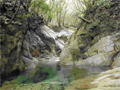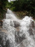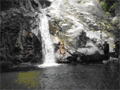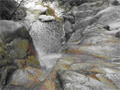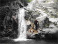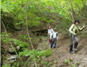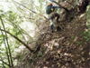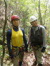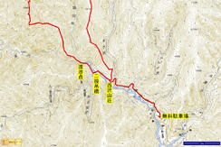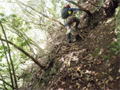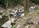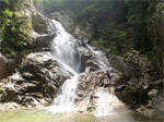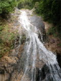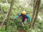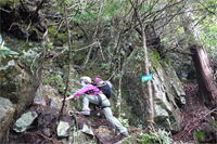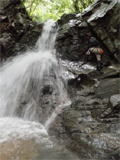 | 鈴鹿 矢原川左俣(本谷)遡行記録 (山行日) 2012年9月2日(日) 現地にて前泊 (参加者) 大沢・北岡・三木 (コース) 7:20坂本棚田駐車場出発 → 7:49「矢原川本谷」標識通過 → 8:15遡行開始 → 8:36最初の5mの滝 → 9:10不動下滝 → 9:35高巻終了 → 9:56不動上滝 → 10:20廊下 → 11:00 渓流の遡行終了 → 11:33仙鶏尾根に辿り着く → 11:37仙ノ石 → 仙鶏尾根 → 野登寺の参道 → 14:15坂本棚田駐車場到着 林道の「矢原川本谷」標識を谷へと下る。最後の下りで足跡を見失って、ずるずるの斜面を滑り降りた。 咄嗟に横倒しになっている木にしがみついて、難を逃れたもののズボンは泥だらけ。 坂本棚田駐車場から40分余りかかって、ようやく沢に辿り着いた。 ここで、登山靴から沢靴に履き替える。とそのとき、左の靴下に2匹、右にも2匹、 ヒルが必死にしがみ付いている。 手につかぬよう引き剥がす。 きっと、あの斜面で滑ったときにやられたのであろう。 とりあえず、目に見える範囲のものは取っ払った。 やはり、この沢もヒルの楽園なのか。 遡行を開始して、最初に5mの滝に出くわす。5mとは言え、水量の多さに登る意欲を掻き立てられる。 右側から登って、滝の中央を左へ横断、そのまま登りきる。 横断したとき、身体は川の内側に入り込んだが、ザックはもろに水を被っていたので、 可也の水圧が身体にのしかかったため、しばしその場で踏ん張った。 外から見ると、私の姿は完全に消えている。 避けて通ることはできるのだが、結構楽しめた。 続いて、5m・4mの斜瀑を登り、5m・6mの滝へと。ここは、左側から水の流 れのないところを難なく登る。 ![]() これを過ぎると、20mの滝がまっすぐ伸びている。 この下で、「ファイト一発」のポーズを決めたつもりだが・・・。 ここは、左の巻き道を使って、滝の上に出た。 続いて、現れたのが本日1番の大滝、80mの不動下滝である。 屈曲しているので、下から全貌を見ることはできない。 最初の6mほどのところまでは登れそうだが、その先が分からないので、 突っ込むことはやめて、右側にある巻き道を登ることにした。 この巻き道の出だしは、小さな沢になっていて、やや登りづらい。少し登ったところで、 左手に滝が見えたので、滝に近づいて行った。 すると、目の前に、どでかい滝が水しぶきを上げて、その勇姿を表わした。 我々の立っている場所の直下で滝が屈曲している。 再び巻き道に戻って、高巻く。 急な斜面と足場の悪さとで、可也神経を使った。 やはり、滝の大きさに合わせて高巻きも長く、体力を要する。 ![]() この大滝の上に出ると、のんびりする間もなく3m〜6mの滝が続く。 いずれも直登する。その後、10mの滝の左を登り、段になっているところから右へ 沢の左の淵を直登する。 しかし、あと一歩のところで、上がれず。 大沢さんが左を巻いて、お助け紐で引っ張り上げてくれた。 このあたりの石は丸く滑りやすそうである。 続いて、20mの不動上滝に出くわす。 この滝は、不動下滝に比べれば、 スケールは小さいが、水量は多く、上流まで真正面に見ることができるので、 迫力がある。 ここは、左の登山道を巻く。 その後、廊下を伝って、再び連瀑。奥へと進む。 両岸が狭まったところで、滝は左上方から水を流し出している。 沢の右淵を登り、一段上がったところで、沢を横断し、左淵へと移動する。 その先は、左を直登して、滝を通過する。 この後は、水と戯れる程度のもので、遡行の終了も近づいていた。 ![]() 高度670mの二俣あたりから倒木が見られたが、コースを左にとって行けば、 気にするほどではなく、上流まで水量が多かった。 ![]() 沢の幅が著しく狭くなって、水量も減ってきたので、沢から外れて、遡行を終了、 登山靴に履き替えた。 仙鶏尾根まで約30分、急斜面の足場の悪いところを直登するには、気合がいる。 仙ノ石で休憩。その後、野登山から坂本棚田駐車場へと下山。 この沢は、距離は短く、川幅も狭い。 そのため、鈴鹿の元越谷や石谷川・本流のように明るさはなく、やや暗く感じる。 しかし、この狭いエリアに数多くの滝が存在し、全く飽きることなく、次から次へとその勇姿を現す。 のんびりと一息ついている暇はなく、時の経つのをすっかり忘れてしまう。 昼食も簡単に済ませており、休憩をしたという認識がないほどである。 大滝を除いて、直登できるのも魅力である。 但し、釜のスケールはいずれも小さく、泳げるところはなかった。 前夜、雨に降られて、ヒルの大量出現かと、また、高巻の地面のぬかるみにと心配をしつつ、 坂本棚田駐車場を出発したが、沢についてみると、川の水は濁っておらず、 ヒルと対面したものの被害はなく、無事沢登りを満喫することができた。 天気は、全般に曇っていたが、時折晴れ間も見えた。 このコースの難を言えば、下山の仙鶏尾根の距離が長く、斜度もきつく、 土質が滑りやすいこともあって、神経、体力ともに消耗した。 野登寺の参道もお寺参りの人が歩いている様子は