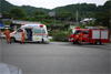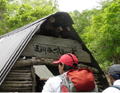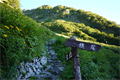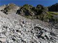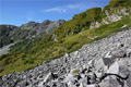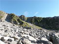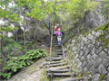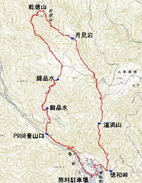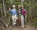 | 奥秩父・乾徳山(けんとくさん・2031m) 本チャン前日にまず一座 (山行日) 2012年7月14日 (参加者) 北岡 伊東(報告) 7月13日(金)19時10分 寝屋川発 甲府昭和ICを降り 小1時間走ると、道の駅「まきおか」に1時着。 明日に備え すぐに就寝。朝5時前 雨がけっこう降っています。 天気予報の「6時に雨は上がる」を信じ 6時まえに起床、出発準備を始めます。 なんと 6時ごろに雨が上がりました。 日頃 天気予報は半信半疑なのに 「信じる者は救われる」で、ありがたや ありがたや です。 道の駅「まきおか」から乾徳山登山口まで 10分足らず車を走らせ、乾徳山入口バス停近くの 無料駐車場に車を停めました。 すでに3台の車が停まっており、右隣には今流行りの山ガール2人、左隣りにも若い男女。 どうやら同じパーティの4人組のようです。 吉祥寺を左に、登山口の標識を過ぎ、徳和集落外れの登山口から入ると 獣除けのゲートがあり、 鎖を外して入って行きます。 ![]() ここから道満山迄 樹林帯の急登です。雨上がりのせいか 蒸し暑く、風もなく どんどん体力が 奪われていきそうです。3 0分に一度の休憩でゆっくり登ります。 道満山は展望もなく 通過点として先に進みます。 やがて大平高原との分岐。 だんだん風も出てきて 曇り空のせいか 休憩していると肌寒いくらいです。 月見岩が見えてくる辺りから視界が開けてきました。 南方向に雲に覆われて一部しか見えない富士山の姿が・・。 青空に冠雪の富士山の印象が強く、さほどの感動もありませんでした。 ![]() 月見岩は国師ヶ原経由と合流する分岐点です。岩を見るとなぜか登ってしまう私達。 ついつい登ってしまってます。扇平の標識のところで小休止です 扇平からは 石ころゴロゴロの道になり、途中 二つに割れた髭剃岩で1枚パチリ。 やがて鎖場その1が現れました。ここは鎖に頼らなくても三点支持で登れます。 髭剃り岩 鎖場その1山頂直下の鎖場その2は天狗岩と言うらしいですが、出だしがツルッとしていて 右手で鎖、 左手で横の岩を抑えながら 少し登ると あとは三点支持で登れました。 天狗岩天狗岩を登り切ったところが岩ゴツゴツの狭い頂上です。 ここでも あまり展望を得ることが出来ず 8人位のパーティが来たので 早々に退散しました。 おっと ここで足が攣り 激痛が走りました。 岩場の登り下りで 変なところに力が入ったのでしょうか。 足が攣るのは 最近ないことでしたが、しばらくすると治まりました。ここらでちょっと小休止。 ![]() おっと ここで足が攣り 激痛が走りました。岩場の登り下りで 変なところに力が入ったのでしょうか。 足が攣るのは 最近ないことでしたが、しばらくすると治まりました。ここらでちょっと小休止。 ![]() 岩場を登ったり下ったりで「水のタル」を経由して下山道に入ります。 前半は急坂のうえ 岩も多く 悪路で 気を使います。テープを追いながら 慎重に下っていきます。 途中 枯れ沢に下りるべきか 迷う所もありますが、どこを通っても 歩きづらさに変わりはありません。 滑り易い岩片の下山道 やがて建物が見えてきました。今は無人の高原ヒュッテです。この辺りが国師ヶ原です。5、6匹の鹿の群れが近づいて来ました。 小鹿がこちらに向かってきます。人馴れしているようです。餌付けしているのでしょうか。 なかなか離れようとしません。 少しすると また鹿の群れです。帰って調べると、この辺り かなり鹿が増殖しているみたいです。 錦晶水この辺りから 歩きやすくなって来ました。先に錦晶水という水場があり、 少し行くと銀晶水という水場がありますが、錦晶水はパイプから勢いよく水が出ており、 銀晶水は ちょろっとしか出ていませんでした。 銀晶水を過ぎた辺りで、大きなザックを背負った若者が10人位登ってきました。 聞くと高校のワンゲル部で、国師ヶ原でテン泊だそうです。 ![]() 一時 高校も大学もワンゲル部に入る人が少なくなったと聞いていたので、なんだか うれしくて 浮かれ気分で歩いていたら ずるっと滑り 思わず左手をつき イテテッ。 ここまで 気を付けて慎重に歩いていたのに 気を抜いた途端にこれです(トホホ) P988の乾徳山登山口まで下りて来ました。約30分で駐車場に到着しましたが、救急車が1台停まっています。 やがて消防レスキュー車が到着。上空にはヘリが飛んでます。 聞くと 30代の4人パーティーの一人が道満尾根で気分が悪くなりヘリを要請したとか。 吊り上げることが出来ないと 隊員が向かうことに・・・。 そういえば出発時 私達の車の左右に停めていた4人組の車がまだあります。 一言二言 言葉を交わしただけに身を案じながら「みとみ笛吹の湯」で汗を流し、 今日の寝ぐらの道の駅「みとみ」へ向かいます。 今日の夕食はうどん鍋です。 17時半ごろ ヘリがまた1機 西沢渓谷方面に向かってます。 翌日聞くと 鶏冠谷(明日の予定の鶏冠尾根のすぐ東側)で沢登り中 10m滑落した死亡事故だったそうです。 今回のメインである翌日の鶏冠山登山を控え 不安