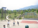 滋賀県滋賀郡志賀町木戸 大津方面から車で・・・ 161号線沿いにあります。びわこバレイ登り口より少し北へ行き、志賀霊園看板を左折すると、すぐ右に入る道があり駐車場へ続きます。 ジャンボ滑り台、綱のジム、軟らか素材の土俵 ブランコ、子供用滑り台数種類、土俵砂場、うんていなど。遊具は新しくきれい。 ジャンボ滑り台のスタート付近には、お手洗い、 お弁当広場という芝生の広場もあります。 (バーベキュー禁止) |