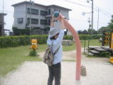 ときどき見かけるジャンボ滑り台、滑るところがローラーになったものです。 このタイプの滑り台、滑ったらお尻や足がすごくかゆくなる!(私だけかな?) |