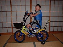 ・自転車“俺様V号”……三輪車の次はやっぱり自転車にも乗らないと〜。