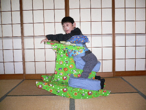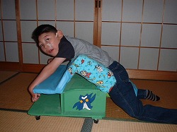 ・前もたれ……友達が作っているのを見て、これなら拓も一人で前傾姿勢で座れる!?