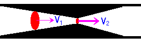 例2:逆に右図の様な形状の流路においてはV1がV2に近くなり例1と同様に無視できなくなる。