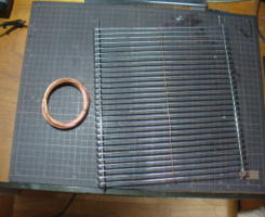 現在使っているストーブは、エキスパンドメタルの網目のガードなので、A4の紙が入ることはありませんが、横線のみのガードもよく見受けられますので、そのガードの真ん中に縦に柔らかい銅の針金を張ってみました。縦の針金は数多く張ることが、より安全につながるはずです。
