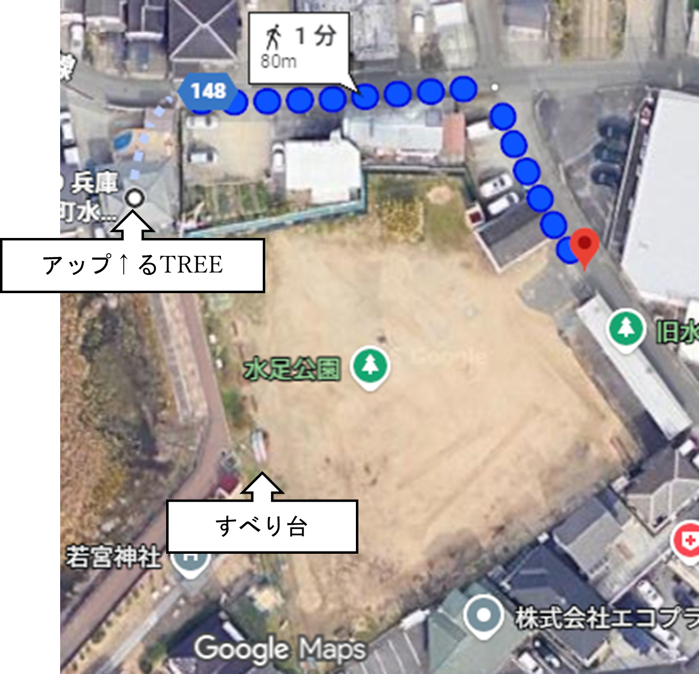 施設南に隣接する水足公園の滑り台前でお迎えを待ちます。