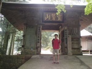 第21番札所太龍寺も又山の上。歩けば下りて登って6.5km3時間のコース。車だと、ひとつはぐるっと回って最後1kmほど歩 くコース、もうひとつは那賀川にそってわしの里に出てロープウェイを使って上がるコース。後者を選び行く。那珂川の崖を切り開いて作った道は見晴らしはよいが険しい。ロープウェイにいざ乗ろうとして往復2400円には驚いたが、いまさら戻るわけにはいかない。太龍寺は杉の木がうっそうとし、涼しい風が流れ、西の高野山と言われるだけの風格はあった。