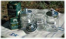 屋台の上でイギリス人のおばあちゃんが薦めてくれたコーヒー、紅茶、シュガーの3点セット。