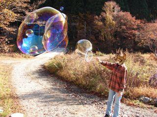 欲を言えば、3秒ぐらいシャボン玉の中に入っていられたら最高なのに・・・。
