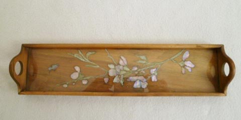 花の図柄を貝殻ではめ込んで