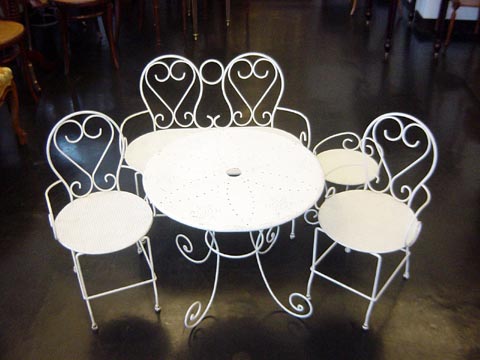 50%off商品詳細 年代:19世紀後半 材質:アイアンペイント サイズ: テーブルH47 直径52 サイドテーブルH34 直径25 2人用椅子 床から背 H60 W66 D33 座面の高さ 31cm 1人用椅子 X 2脚 床から背 H59 W30 D30 座面の高さ 31cm 本体価格:50,000円 (税込価格:54,000円) ワンポイントアドバイス ベランダやサニールームでの プランター置きにも素敵です。 |