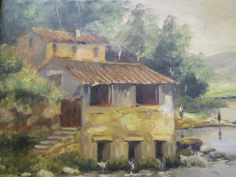 図柄:川辺の風景