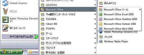 | ノートパソコン TOSHIBA TX/880LSのOSプログラムの配置からExcel & Wordを開く |
