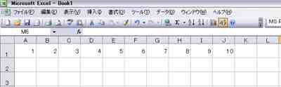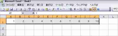 カーソルをA1〜J1までドラッグする。 |