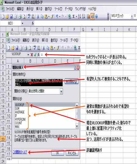 fxをクリックし、左図の指示に従う。