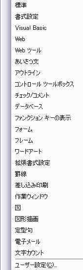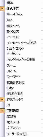 【メニューバー付近を右クリックして レ を任意に入力した画面表示】