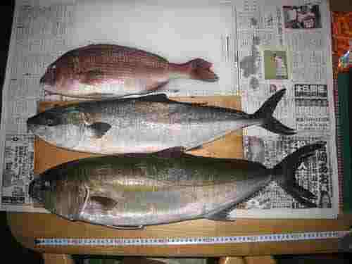 相棒は4匹釣った、持参のエサを試すが当たり 無くシマアジが放流され狙うが当りがない。 棚が取れない。 後、2回シマアジ以外の青物をトータル12匹ぐらい放流してくれた。 放流後あちこちで竿を曲げるがあがったのは半分強か? 私も活きアジを購入して投入するも人の協力をして引き上げてくるそのエサに追ってくる青物をうらやましく見てエサを投げ込む。 浮きが活きアジの泳ぎにあわせて右往左往 上下に動く。しばらく浮きを追っているとスーと入る。 大きくあわして針をしっかりかける。 ドラッグが大きく唸る。釣り人の協力を得て泳がす。 ドラッグを締めて強力にリールを巻いてゲット。 相棒は11時過ぎにシマアジをゲット。 ダイワ:釣堀用ロッドU−36 シマノ:4000番リール ハリス:鯛3号〜4号 青物:7号 道糸:PEライン4号 |