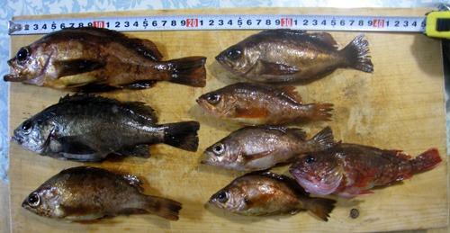 数匹の金メバルをゲットするがサイズを求めて放流する余裕はなくアイスボックスへ投入。