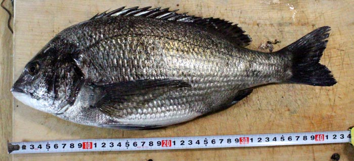 相生湾の黒鯛 仕掛け 1.2−5.3磯竿・2500番2.5号・1.2号ハリス・中とおし0.5B 概要 シラサエビ3杯を用意6人程度の釣り人の間隙に底撒きをする 2011年02月13日