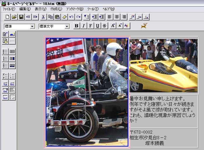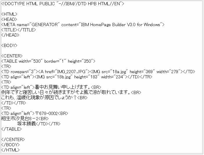 表1×1幅700表中央揃えはがきのビルダー3又はWEB画面とソース画面の比較