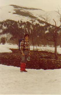 かなりきつい雪渓の登りです。雪渓が切れたところに高山植物のお花畑があります。