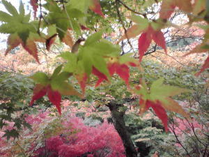 | 紅葉が進んでいます。ここは、多くの木々が赤や黄色に燃え立っています。しかし、市場ではもみの木が売られ始めています。 |