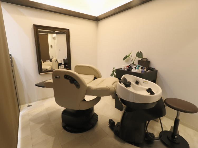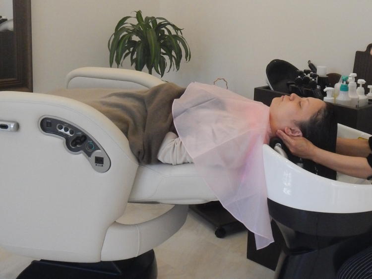 お客さまがリラックスできるフルフラットチェアに長時間の施術でも心地よさを保つネックデバイスで行うヘッドスパで、至福の時間をご提供します。