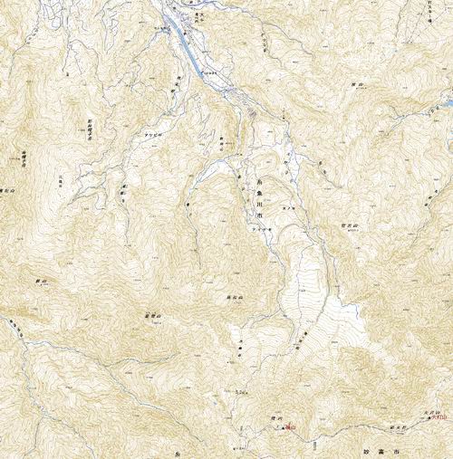 | 次第に木々が密になり、最後は植林帯になります。 「流石は北斜面ですね。最後まで雪は切れませんね!」 そのうち谷筋になり、樹木が密集した急傾斜を下ります。 体も何とか慣れてきました。 最後は、地図上の668mの東側の谷を下ったら、西飛山ダムサイトだった。 「ラッキー、(心配してましたが)神のご加護で?ダムサイトまで滑れました!」 と言うより、先行パーティーの方達のおかげですね。 |