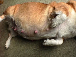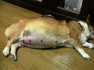 膨れたお腹の色も赤く、おっぱいが張って痛そう(^^;