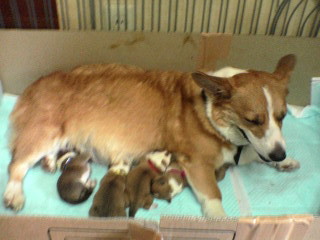 2006.08.26 64日目 朝6:00過ぎ、く〜〜んと鳴いて私を起こしに来た。 おかしいなぁと思って見に行ったら、そこら中に軟便をしている。 あっと思って、水を飲ませたりするが、全く様子が違う。 顔つきも写真のように、目がきつくなっている。 ドキドキドキドキ…。始まりだ!!! AM6:34分 イキミが来る。 頑張れふぅ!!! AM7:35分 無事第一子出産 頭より出産 元気な泣き声を上げる。 305gのビックな女の子でしたヽ(^o^)丿 AM10:00 第二子 逆子出産 引っ張るがなかなか出ない。 250g前後の男の子 死産 AM10:25 第三子 逆子出産 二子の蘇生にかかわっている瞬間に生まれ出る。 同じく男の子死産 AM11:06 第四子 頭より出産 とても元気な235gの女の子 AM11:24 第五子 逆子出産 元気な女の子235g PM12:35 第六子 頭より出産 生まれていきなり鳴き出した元気な男の子 255g PM13:59 第七子 逆子出産 265gの元気な男の子 PM16:17 第八子 逆子出産 235g 仮死状態で生まれ、タオルで30分マッサージ 無事蘇生ヽ(^o^)丿 PM18:05 第九子 逆子出産 230g 死産 8匹だろうとの予想に反して、9匹も出産したふぅ。。 最後あたりは息も絶え絶えで、本当に苦しかったね。 いきむ力もなくなって、ぐったり目を閉じて。。。 かかわっていただいた皆様の声援を受けて、 二ヶ月少し、本当に頑張りました!! お疲れ様。おめでとう。ありがとう。ふぅ、新しい命、去っていった命。 すべて、すばらしいドラマでした。 さぁこれから第二章のはじまりUo・ェ・oU/゜・:*【祝】*:・゜\Uo・ェ・oU |