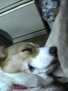 つわり!?フードを全く食べなくなった。ふりかけで誤魔化すが、小食になる。 かなり眠いようで、しょちゅう寝てるふぅ…。 今日は腕の中で寝てしまった。かなり重いんですけど〜(笑) 眠いのは人間と同じデスネ。 |