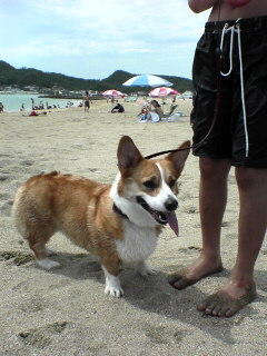何もなかったように、砂浜を散歩中のふぅちゃん(^^; 大丈夫か…。 |