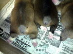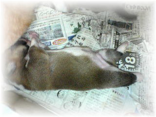 | 8/28 3日 | 335g(+15) | 265g(+15) | 260g(+15) | 295g(+45) | 300g(+40) | 210g(-15) | みんなピイピイ鳴いている。 よく飲みよく寝る(^^)vv 薄ピンクちゃんだけまた減った。。 観察していると、必ずおっぱい争奪に負けている。 完全に人口哺乳に切り替えよう。 |