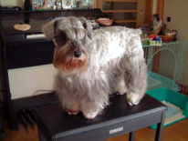 愛車にワックスを掛けるように、愛犬も自分でカットしてみてはどうですか?。 小さい頃からやっておけば、大人しく椅子の上に立っていてくれます。 カットしすぎてもすぐに伸びますし、人に頼んでやってもらっても気に入らないこともあります。 たまにプロに頼んで技を覚えるのも良いことだと思います。 BILLは、裾の毛を伸ばして一直線にしていますので、後ろから見るとサンバのリズムで踊っているような歩き方です。 但し、ブラッシングを怠ると毛玉だらけになりますので注意が必要です。 |