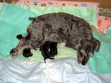 | あっ、何か黒い物が出てきた | 午後10時00分 第一子女の子誕生 | WINEは子犬を舐めまくり |
