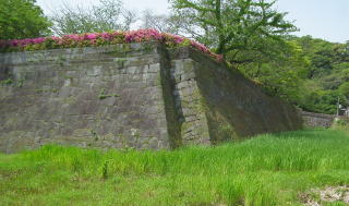 | 本丸の堀と石垣 | 本丸石垣の鬼門除の隅欠 |