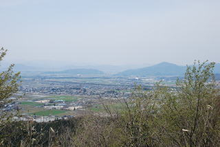 国道8号線の八幡東の交差点を東に折れ、県道509号線に沿って約5km進むと、トンネルの手前に石田山公園の駐車場(約10台駐車可能)がある。この駐車場の階段から、山に入る。道はハイキングコースになっているが、それなりにきつい道ではある。約30分歩くと、見晴らしの良い山頂の曲輪に到達する。石田町の日吉神社からも登ることができる。石田町は石田三成の出身地。(2010.04.18)
