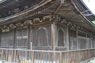 | 禅宗様の仏殿に特有の、檜皮葺の屋根に反りをみせ、また裳階にも反りが有る。内部は敷瓦の床になっている。千手観音坐像を本尊とする。 |