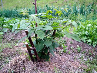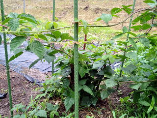 ブラックベリー(ボイセンベリー)です。 かなりツルが伸びましたがまだこれ からです、3m位伸びます。 |