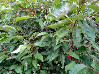 <ブラックベリー> ブラックベイー(ボイセンベリー)です。昨年 は沢山実り収穫するのが間に合わず腐ら してしまいました。 昨年末にかなり短く伐採しましたので実 がなるか心配です。 |