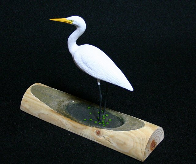 アオサギに続いてミニチュアのダイサギを作っています。本体はだいたい出来ましたが台をどうするか検討中。素材はジェルトンです。(06/11/10)