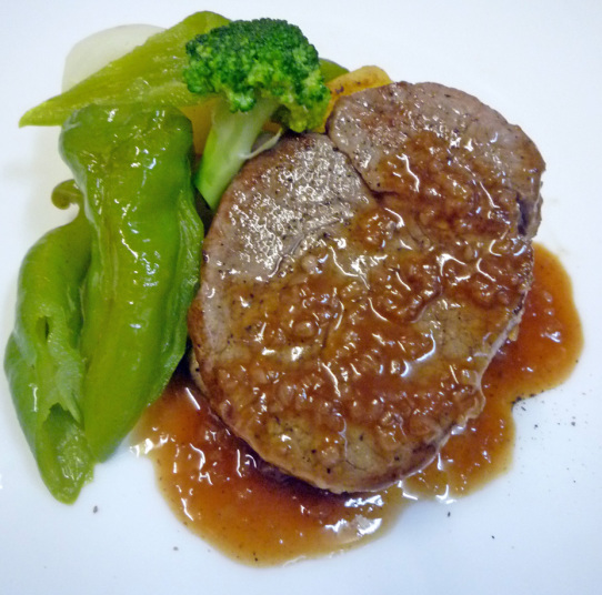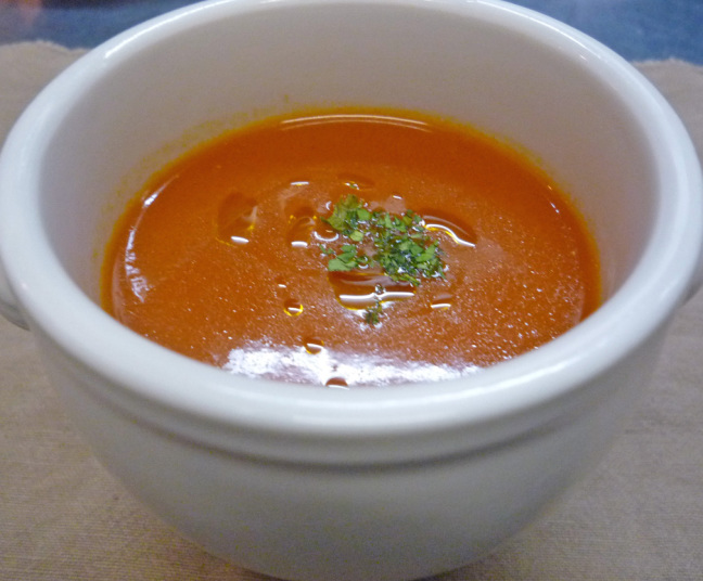 ・カツオとホタテ・焼ナスのサラダ ・トマトのポタージュ ・仔牛フィレ肉のステーキ 木の子のソース ・チョコレートケーキとくりのアイスクリーム ・コーヒー又は紅茶 |