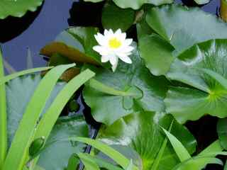 ![]() 写真左:鯉沢の池に咲く睡蓮 写真上:鯉沢の池 |