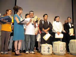→一般の部で入賞した時の写真です。お寿司屋さんと私です。優勝から3位まではプロの方が受賞されました。