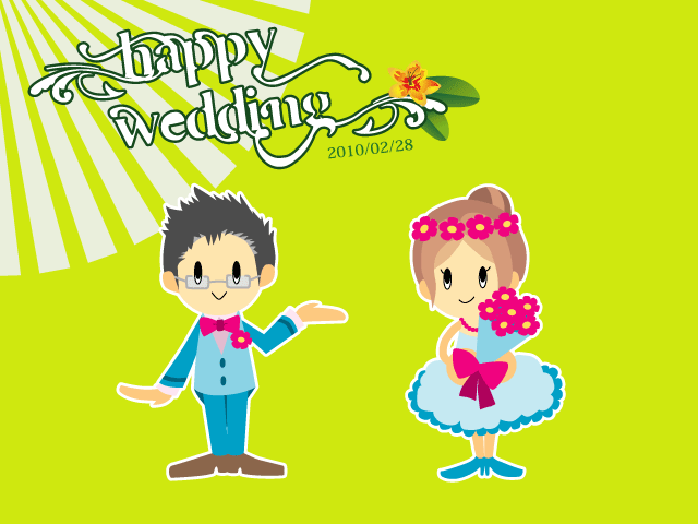 頼まれて描いた結婚式の紹介冊子の一部です。一応写真を貰って描きましたけど、似てるも似てないもないよね。